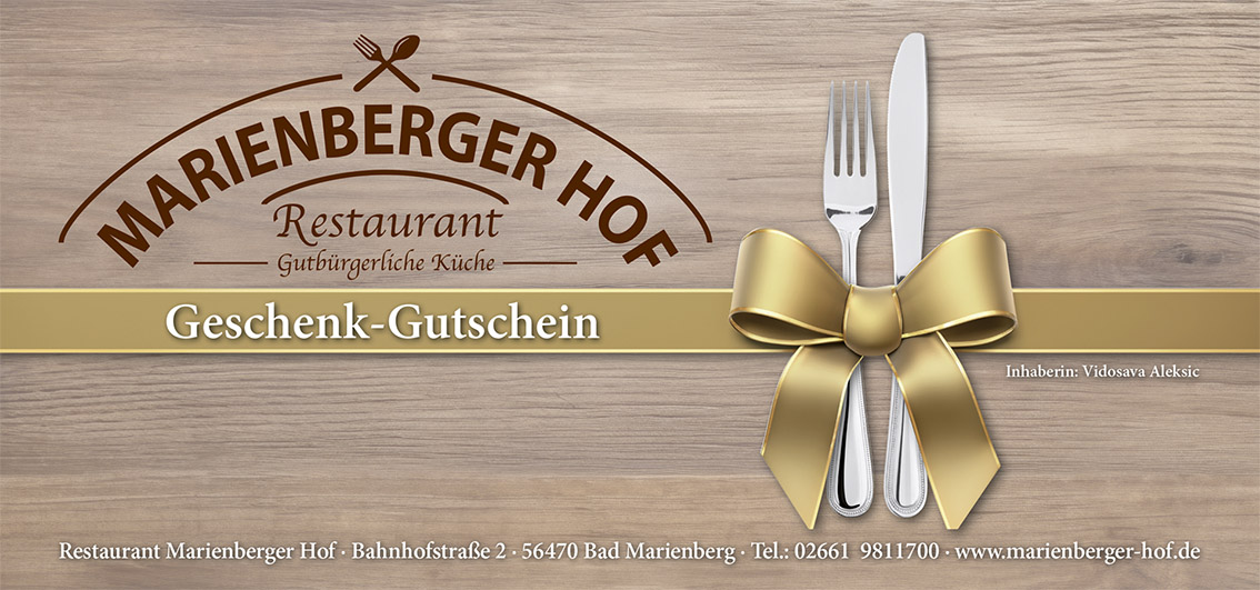 Verzehr-Gutscheine – das ideale Geschenk zu jedem Anlass! Überraschen Sie Ihre Lieben mit einem leckeren Essen im Marienberger Hof.